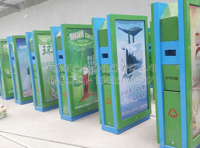 山東德州大畫面背靠背新款廣告垃圾箱發(fā)貨安裝