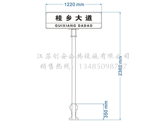 此款路名牌LMP-05主體采用鍍鋅鋼結構,表面采用氟碳金屬烤漆工藝,視窗面板采用鋼化玻璃,燈箱內置LED燈。具有外形美觀、表面耐腐蝕、抗風性能強、使用壽命長等優(yōu)點。產(chǎn)品的樣式、尺寸、顏色、材質、配置等均可按需定制。